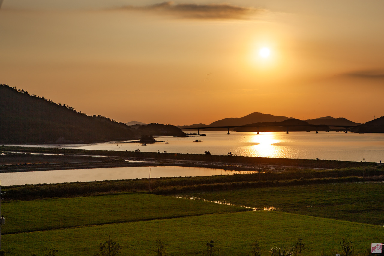 이튿날 일출을 호텔 방에서 맞았다. 여기는 서해안이다. 해수면에 접한 호텔 방에서 일출을 보리라곤 꿈에도 생각하지 못했다. 지난밤 11시까지 정책자문회의를 했다. 이른 아침부터 밤늦은 시간까지 모두 강행군을 했기에 일출은 미처 생각하지 못했던 것이다. 급하게 카메라를 챙겨 몇 장 찍었다. 라마다프라자호텔은 백길해변을 끼고 길게 늘어서 있기에 서쪽도 동쪽도 바다였다. 일찍 파악했더라면 일정상 일몰은 보지 못했더라도 일출은 제대로 촬영 준비를 할 수 있었을 텐데 하는 아쉬움이 남았다. 멀리 은암대교 위로 해가 떠오르는 것을 보며 오랜만에 일출을 감상했다.