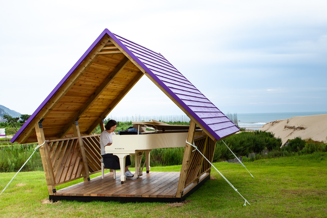 수석미술관 옆 정원뜰에 양산해변을 내려볼 수 있는 공간에 처마가 있는 작은 공간에 피아노 한 대가 놓여 있었다. 뮤지엄파크를 지향하는 이곳의 상징과도 같은 느낌을 주려고 한 것 같다. 자은도를 ‘피아노의 섬’으로 만드는 프로젝트가 진행되고 있었다. ‘피아노의 섬’은 프랑스 북부의 작은 도시 ‘르 투케 파리 플라주’의 피아노 축제 ‘레 피아노 플리에 Les Pianos Folies’를 벤치마킹한 것이라고 한다. 일행 중 한 분이 피아노를 연주했다. 아름다운 선율은 바다를 배경으로 정원에 울려 퍼졌다. 나중에 양산해변에 피아노를 놓고 진짜 연주(임동창)를 하는 영상을 볼 수 있었다. (https://www.culturemonth.kr/)
