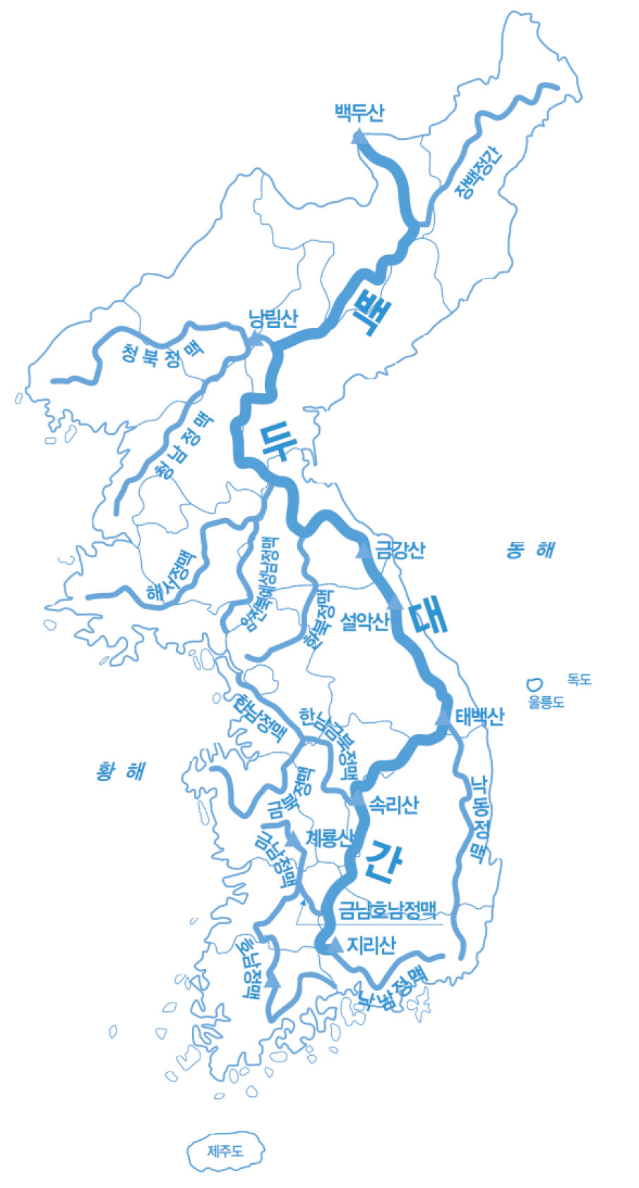 백두대간 지도(산경표의 첫 장과 한반도 산줄기)