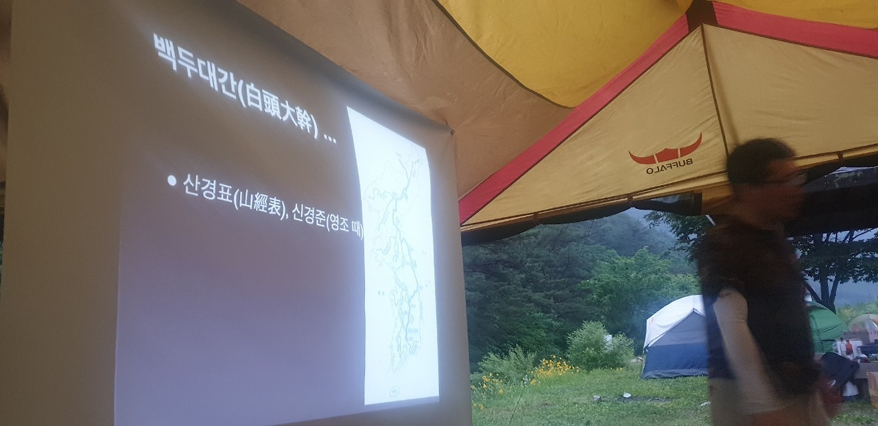코로나 19 확산으로 4월의 캠핑이 6월로 연기되었고, 비가 올 예정이라는 예보에도 불구하고 강행한 행사였는데, 너무나 좋은 날씨에 즐거운 오후를 보내고 밤이 되어 발표를 준비하는데 비가 내리기 시작했다. 대형 천막으로 장소를 옮겨 쏟아지는 비를 피해 가며, 천막 위로 고인 물을 들어내며, 날아드는 벌레를 쫓으며, "백두대간과 트레킹"에 대해 공유하는 시간을 가졌다. 저녁 비가 오는 캠핑장 천막 안에서의 취중 강연은 새로운 추억을 만들었다.