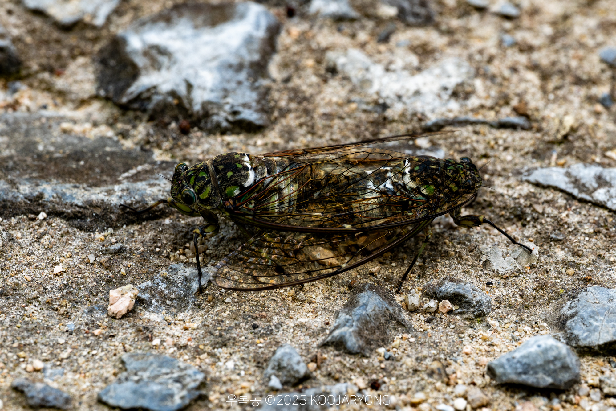 매미 두 마리가 붙어 있었다. 아마도 교미 중인 것으로 보인다. 나무에서 왜 떨어졌는지는 모르지만..