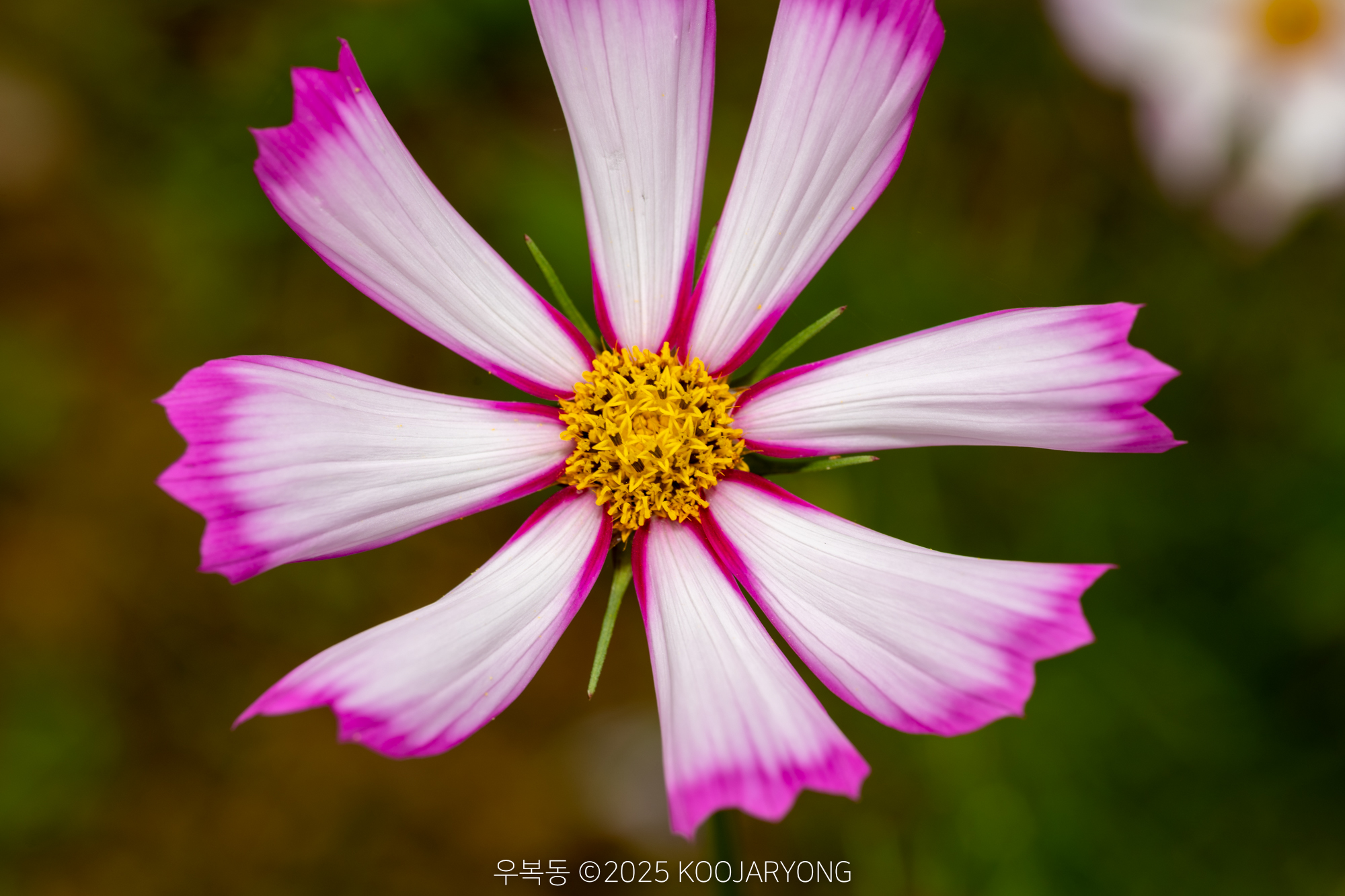 코스모스는 코스모스속의 한해살이풀로 흰색, 분홍색, 보라색 등 다양한 꽃이 핀다.