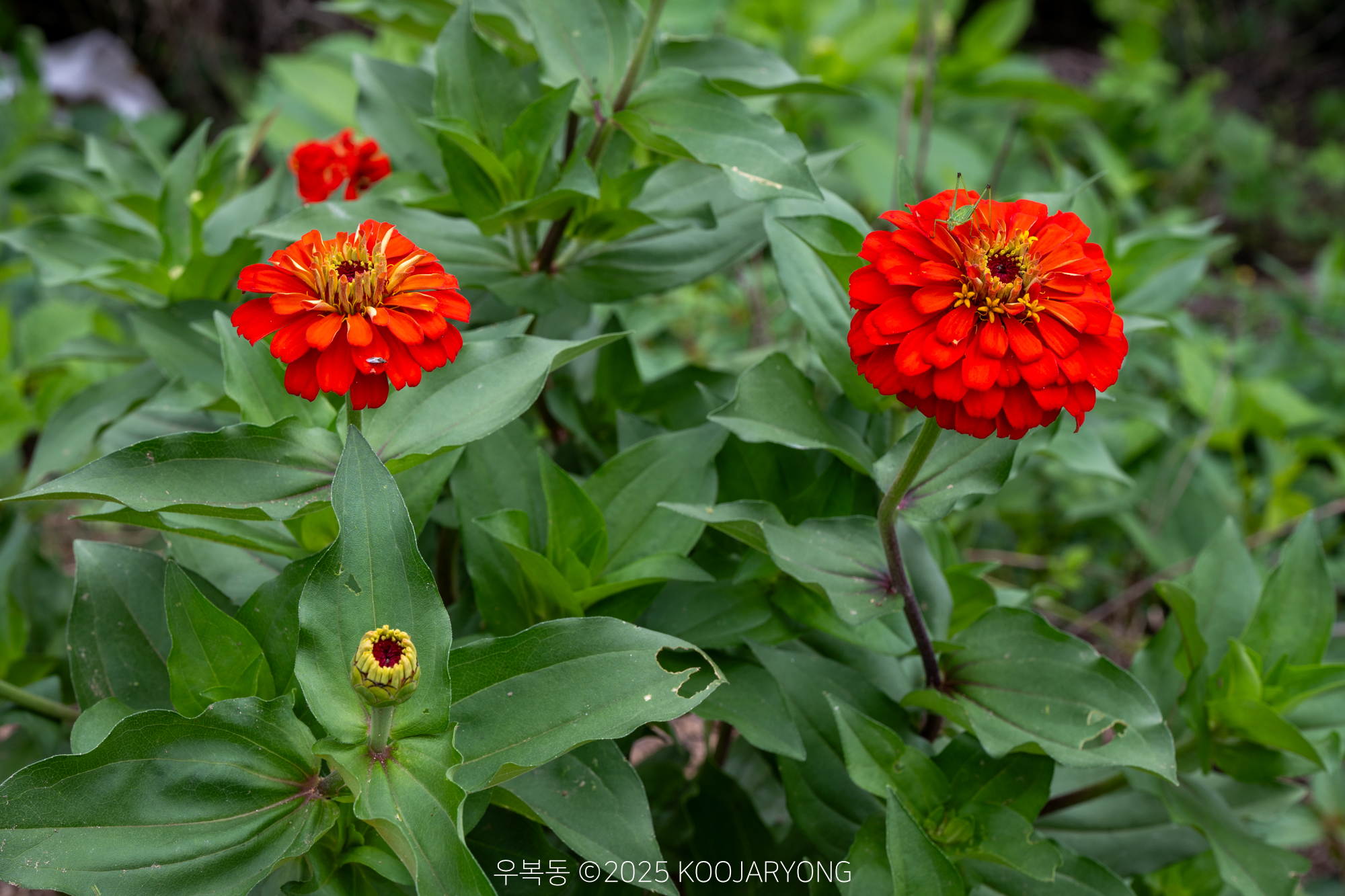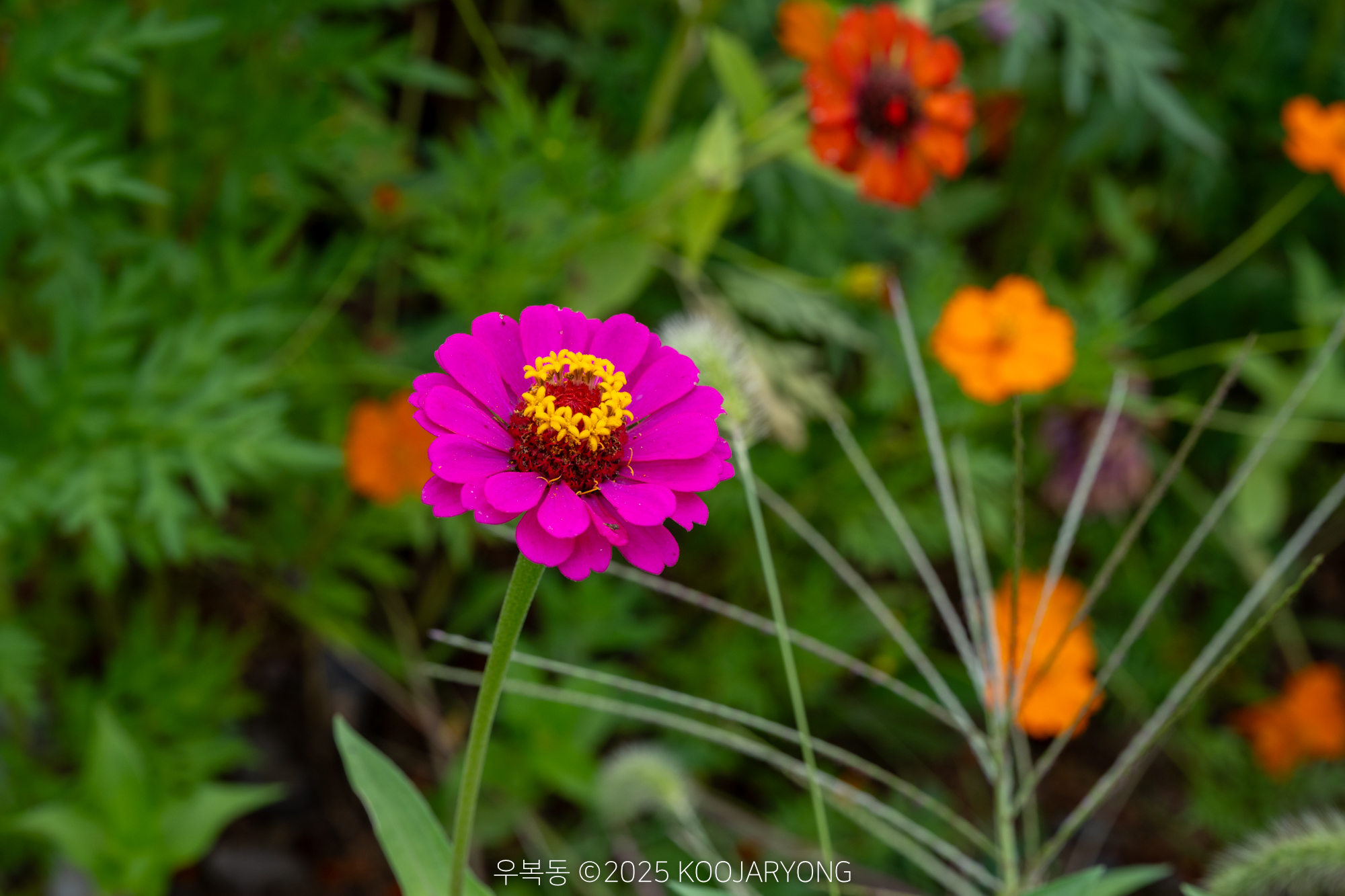 국화과의 한해살이풀로 빨강, 분홍, 주황 등 다양한 색상의 꽃을 볼 수 있다.